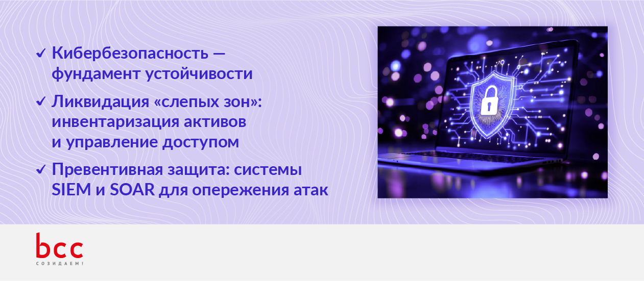 Подход компании «Би.Си.Си.» — ставка на автоматизацию и превентивную защиту: системы должны выявлять угрозы и реагировать на них быстрее человека. Первый шаг — полная инвентаризация активов. Специалисты «Би.Си.Си.» внедряют системы SGRC для учета оборудования и ПО, а также IDM — для управления учетными записями и правами доступа. Только зная, что именно защищаем, можно выстроить эффективную защиту.